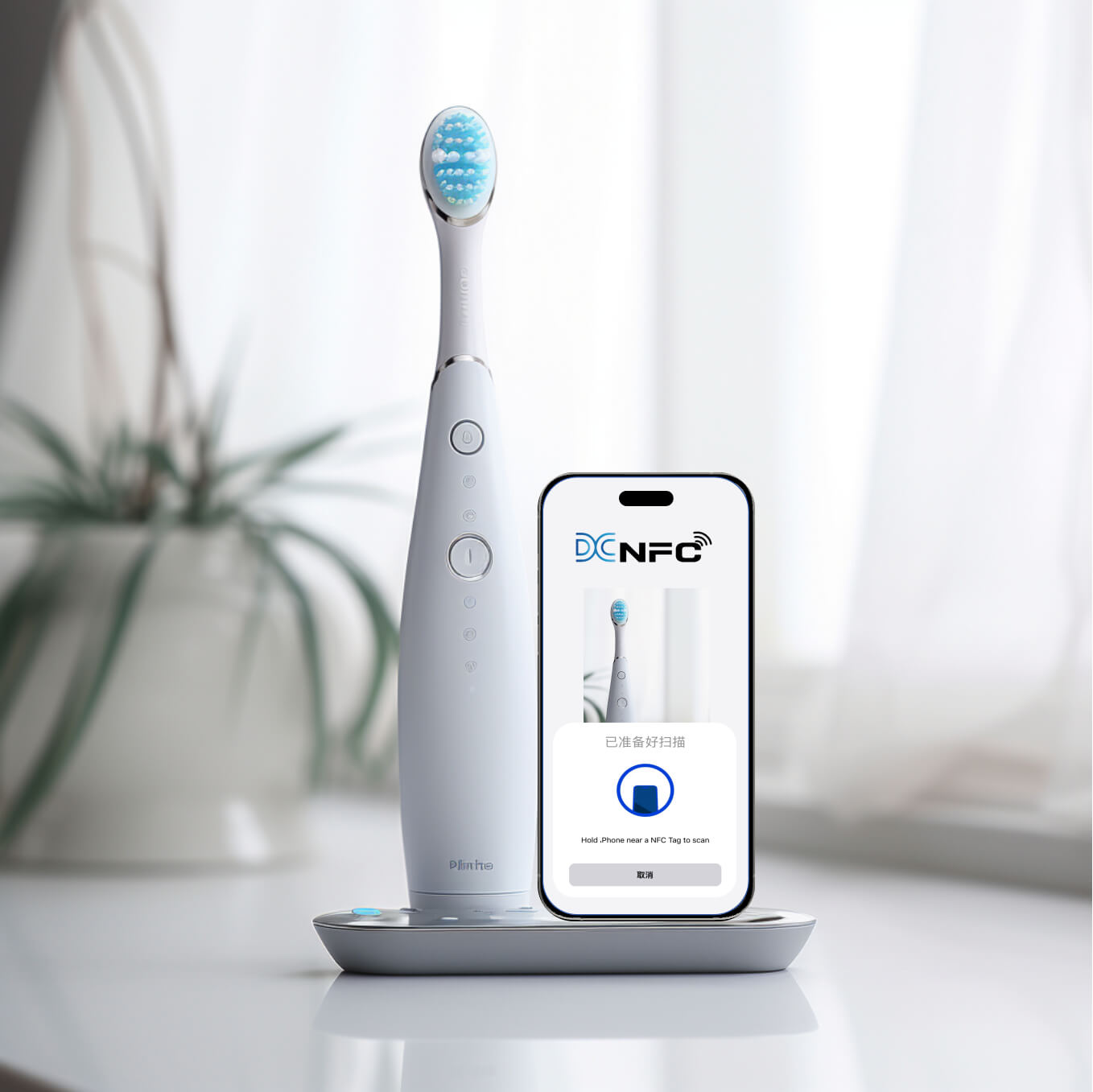 电动牙刷杆内嵌有读写器,可以验证牙刷头的NFC是否为品牌方自制,若是则电动牙刷启动,否则不供电。